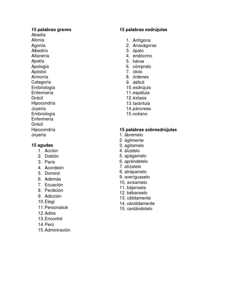 Texto Con 15 Palabras Agudas : 100 Palabras Agudas Sin Acento Pdf. Texto corto con palabras agudas, graves y esdrújulas: En esta ocasión podrá practicar las tildes de las palabras agudas,. Aquí tienes un texto corto con agudas, graves y esdrújulas.